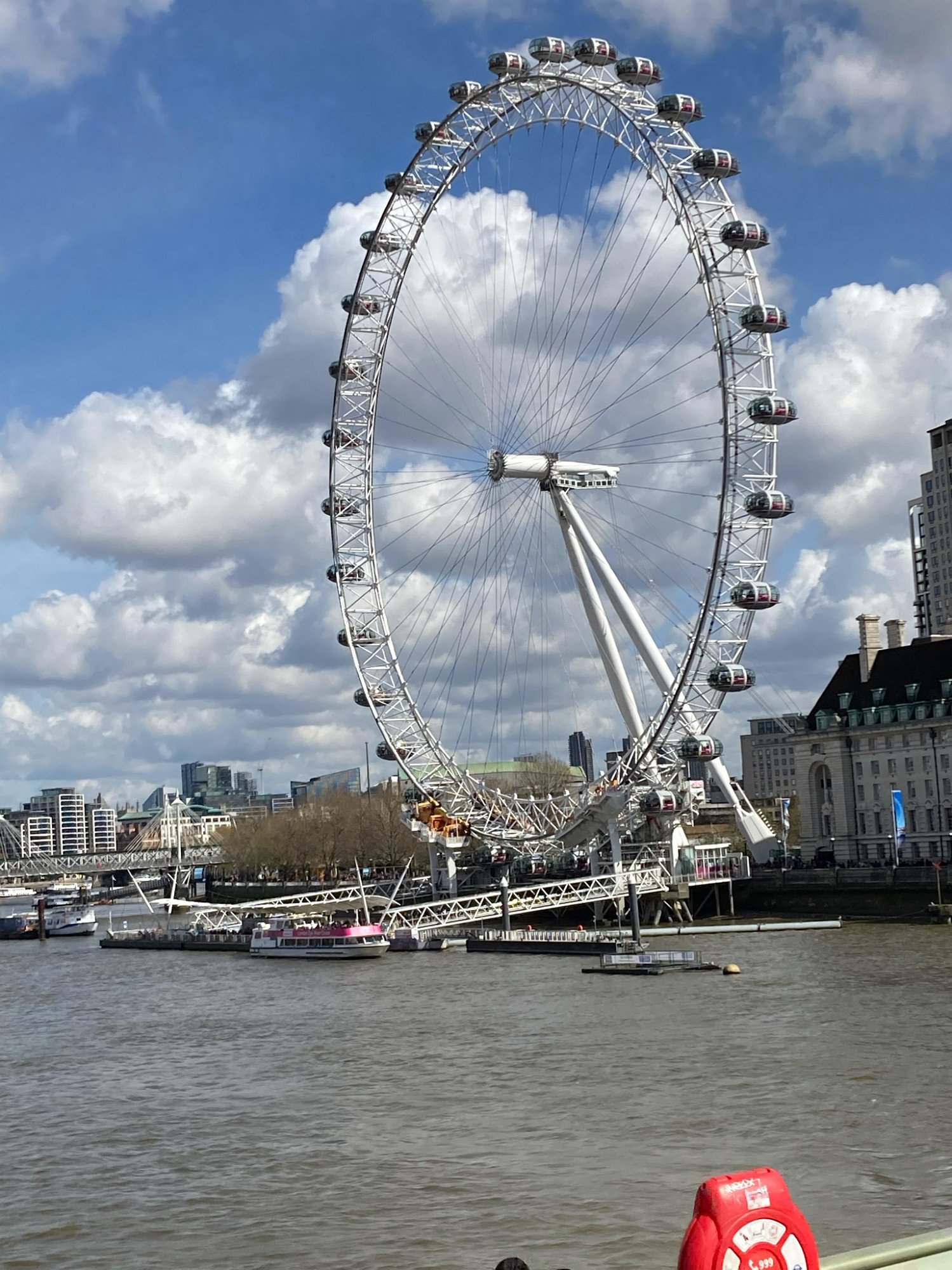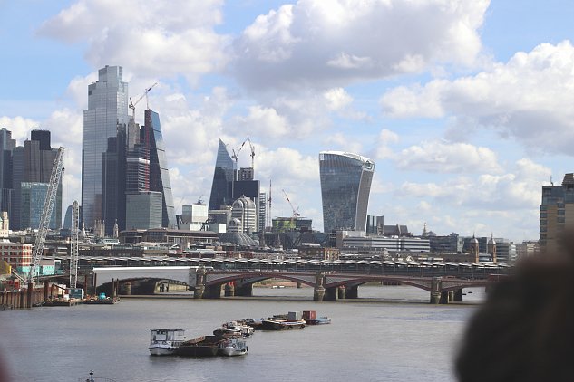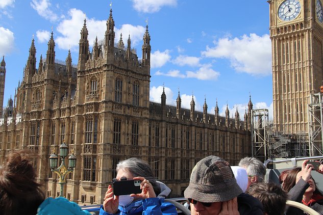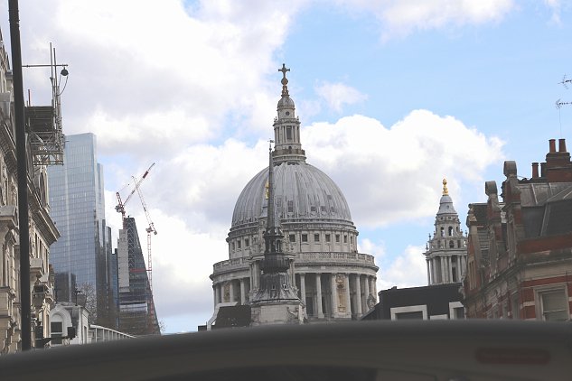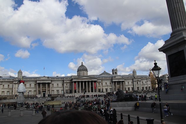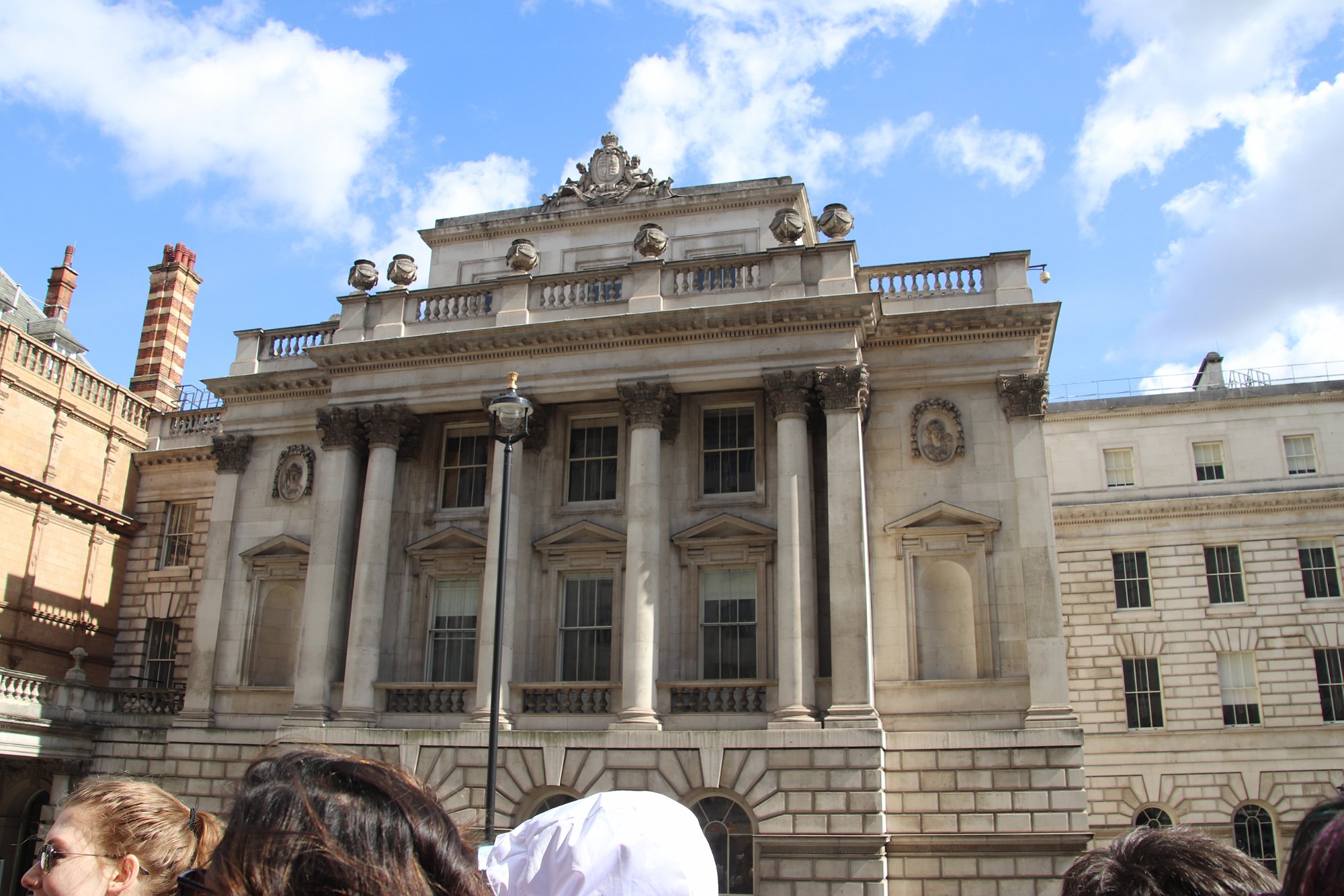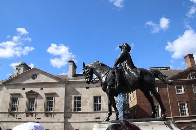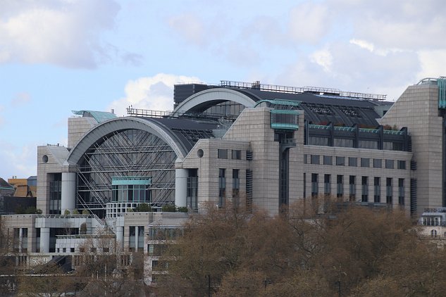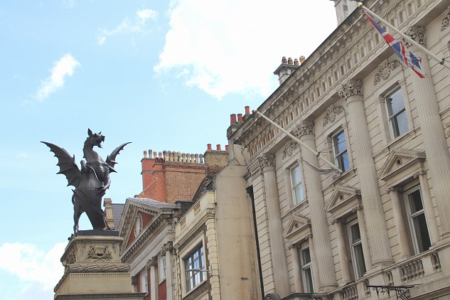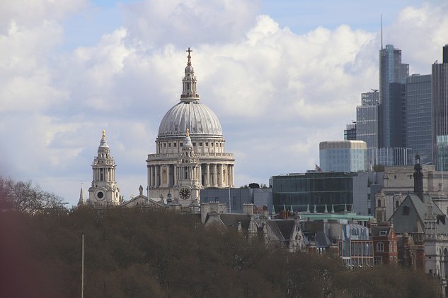 Admiral Nelson, atop his column in Trafalgar Square. Trafalgar Square from the bus Wellington The Houses of Parliament This clockface of Big Ben is working. 2 others were not. Abby The London Eye from Westminster Bridge Abby Abby Near Waterloo Station The MI5 building. It isn't hidden very well, is it? Part of London's skyline St. Paul's Cathedral dominates, even outshining the newer, taller, buildings Another view of St. Pauls The two towers almost appear to be part of St. Pauls The revenue and customs building (HMRC) Royal Courts of Justice St. George's dragon?? Abby; King George VII I liked the architecture Tower of London and British MuseumOxford