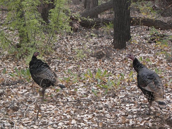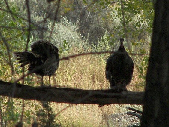 They must be wild because your basic domestic turkey can't fly up into trees.
