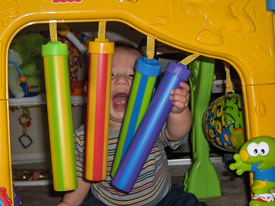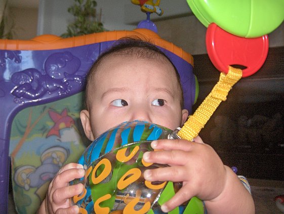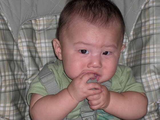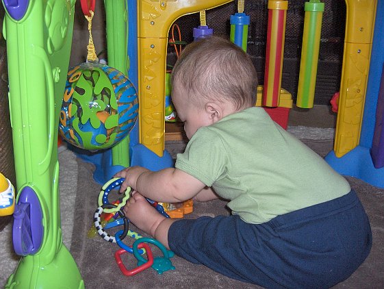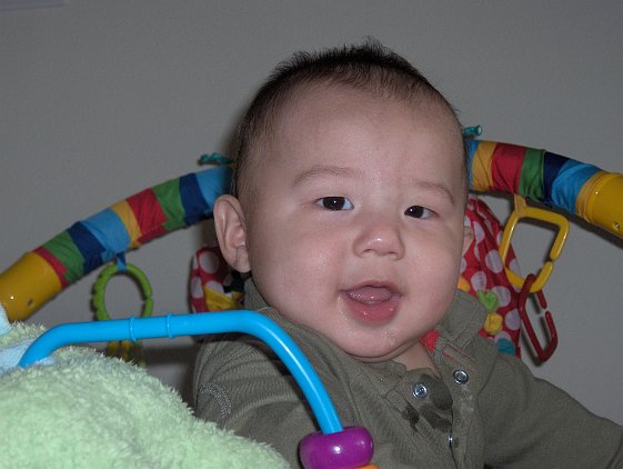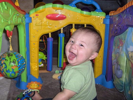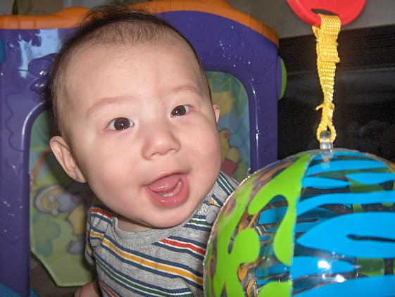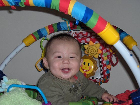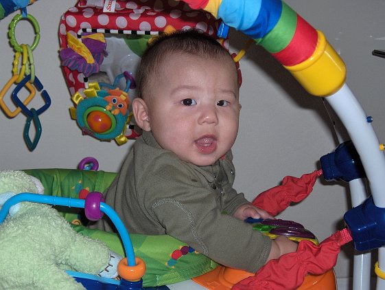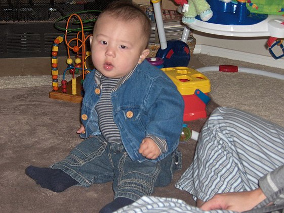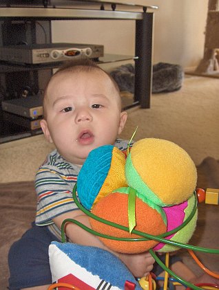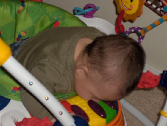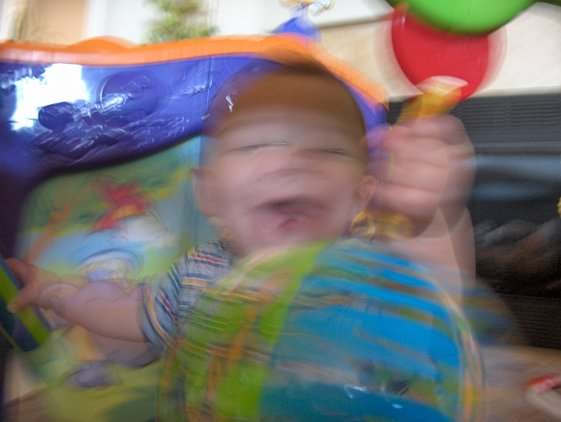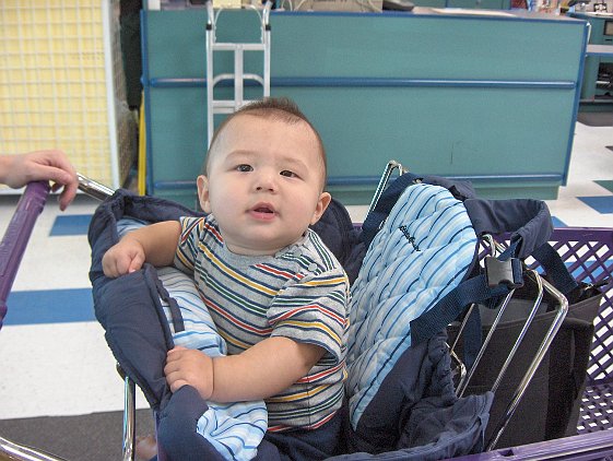 Not quite ready to crawl on his own, but you can see him getting ready. Trying to decide if he likes what he ate. (The answer is usually yes.) A male model? So talented he can activate a button with his nose. Pretty pleased with himself. Showing off a couple of teeth. You'll notice his head is about as round as what he is holding. Helping with some shopping. A blur of motion. Looking for approval? Making noise. Fingers and toes If I don't get fed when I'm hungry, I wil eat the furniture. We were expecting to go to Las Vegas for a baby shower, but Abby arrived early andwe were able to celebrate her birth.