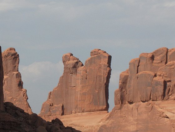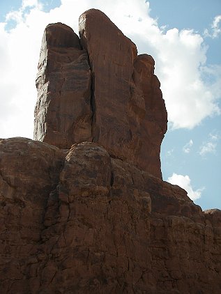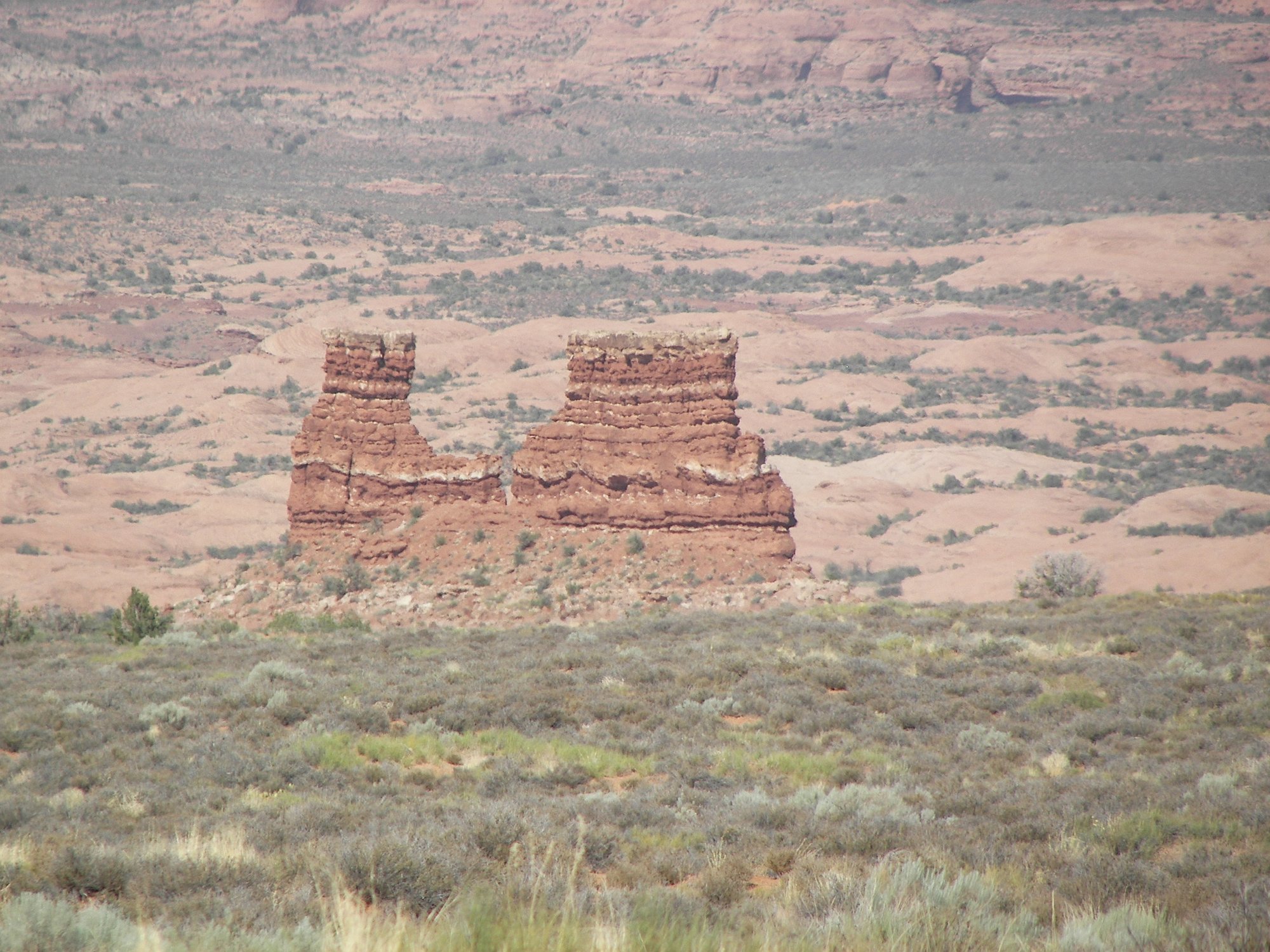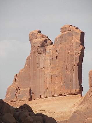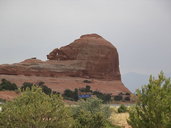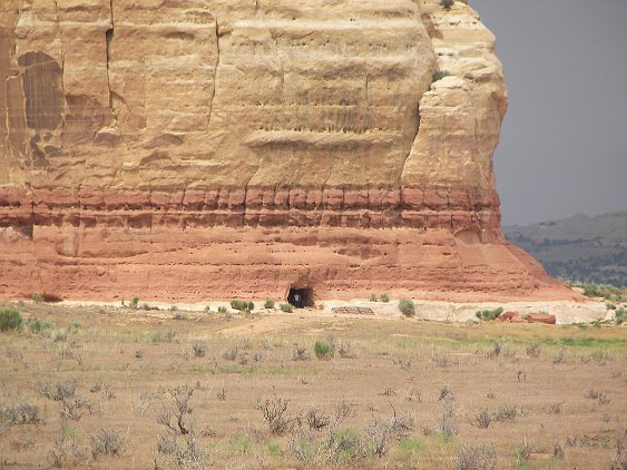As we got closer, we could begin to get a sense of scale. It is called "Church Rock" or "Newspaper Rock". There are many petroglyphs here. Pictures of the…