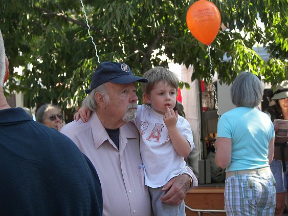 76 images 44 images1 video We have a resident butterfly And a resident lizard. The cactus is flowering all around. This cactus is just off our nearby path. Cactus in the evening light I have never seen so many cactus plants with flowers Last remnants of the "Chili Line" railroad. This was a bridge support. This moth comes in the evenings. It is about 6 inches across. We think it is a five-spottend hawkmoth. Hawkmoth info The base of the Civil War Soldier's memorial in the Plaza This 33-foot obelisk tops the memorial. It was dedicated in 1868. We went to the "Pancakes on the Plaza" celebration on the 4th. The Gulf States Air National Guard band provided some early music. Kids can eat pancakes too. There were costumes. Interested observers Getting ready for the Pajama Parade Some kids don't need much to be entertained. Some pictures of how the house looks in JuneAugust and SeptemberVisits, Abby is born, trip to Las Vegas