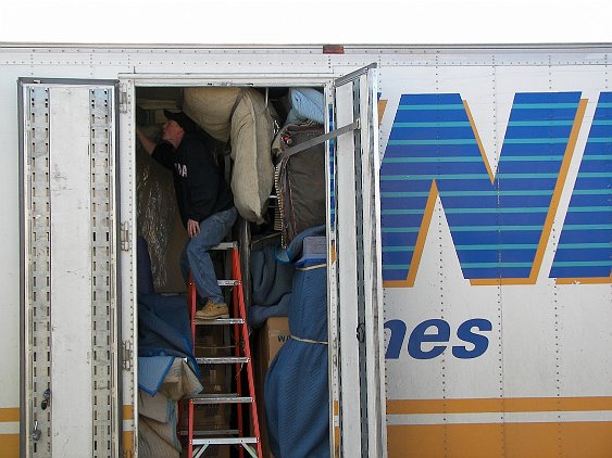 There was more snow than I thought there would be. But there was not too much snow at any one time. And the landscape looks very nice this way. On the other hand, it snowed every other day for more than a week. One of the moving vans. They are trying to find the things that were picked up in Seattle. There were lots of boxes In early March we got another snowstorm. This time there was an indication it would be a big one. You can see the precipitation drifting across the landscape. By now, we have discovered that the snow melts in a day or two at the most. August and SeptemberVisits, Abby is born, trip to Las VegasOctober, November and DecemberBalloon, Trip to Las Vegas, Winter, Getting ready for Christmas