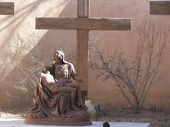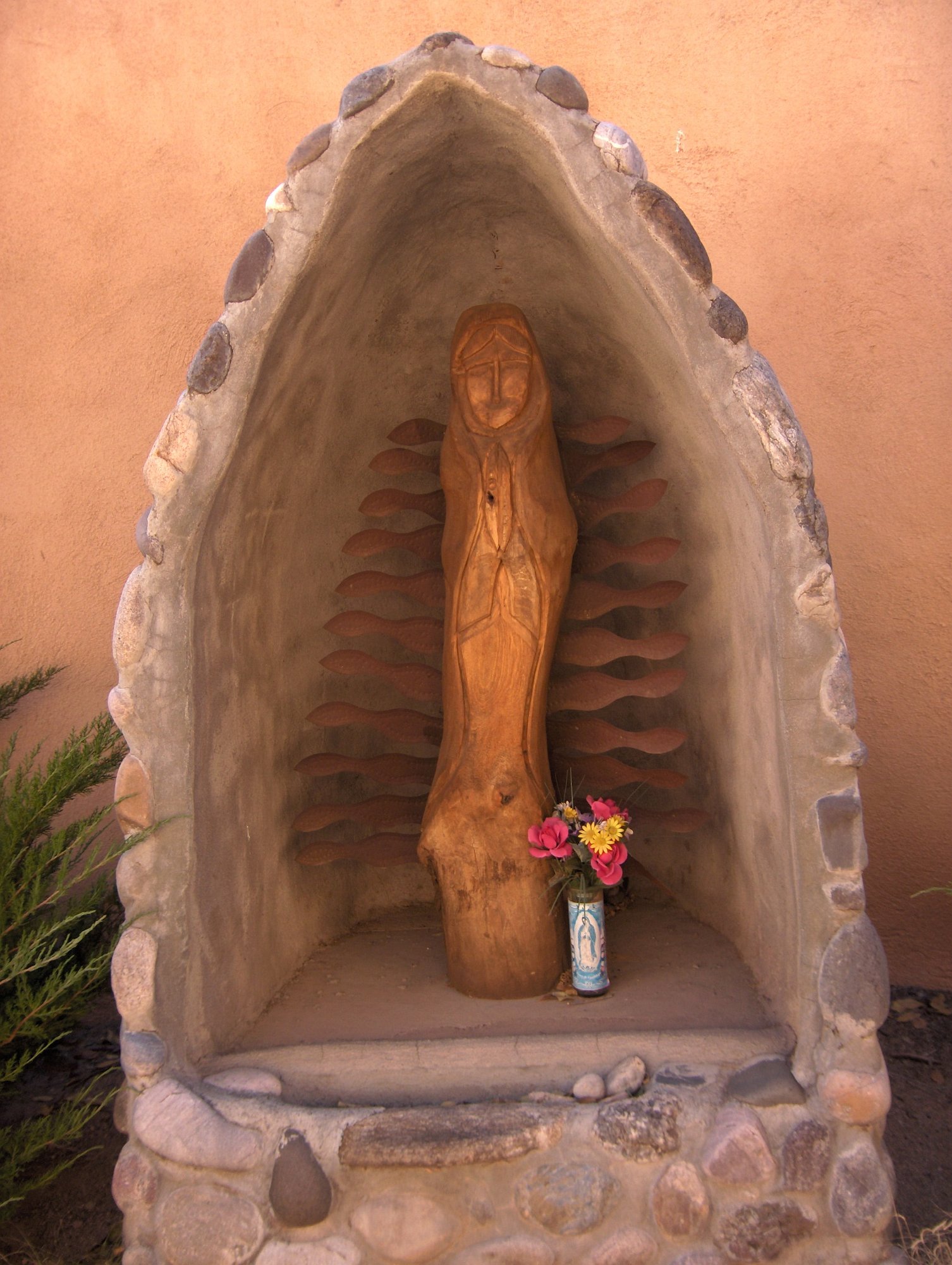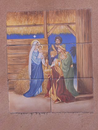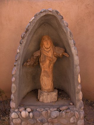 There isn't much going on in Cerrillos these days, but that store has had several lives in the past 150 years or so. We did not get inside the church. New Mexico sky. We liked the modern sculptures we found. Behind this gate we found a nice, simple shrine. The work was all done by local people. We visited Kate, Jeff and Abby when Abby was about a month old