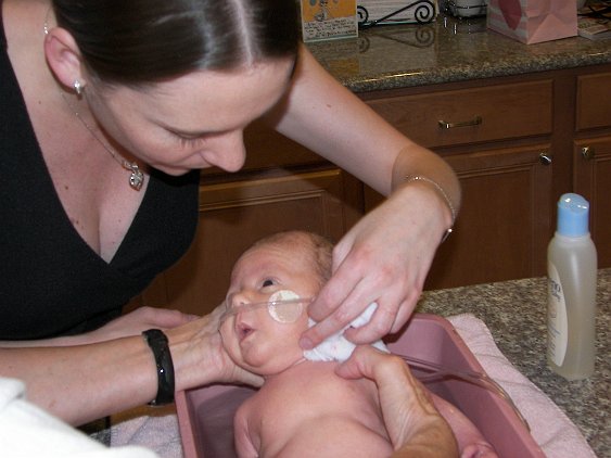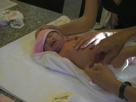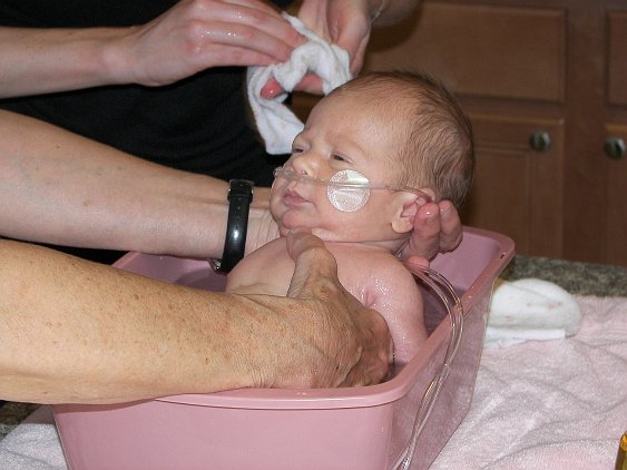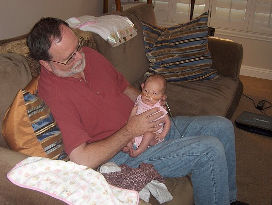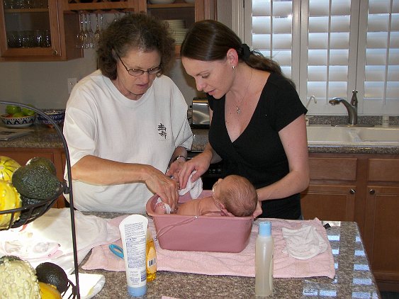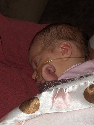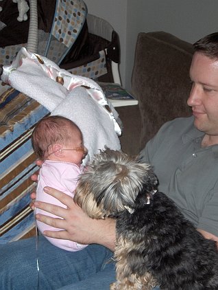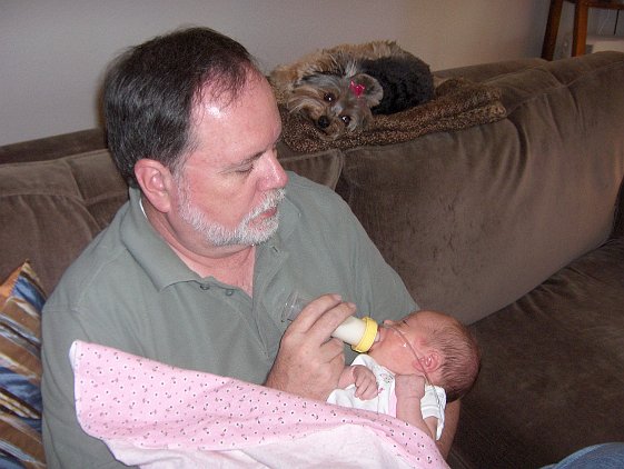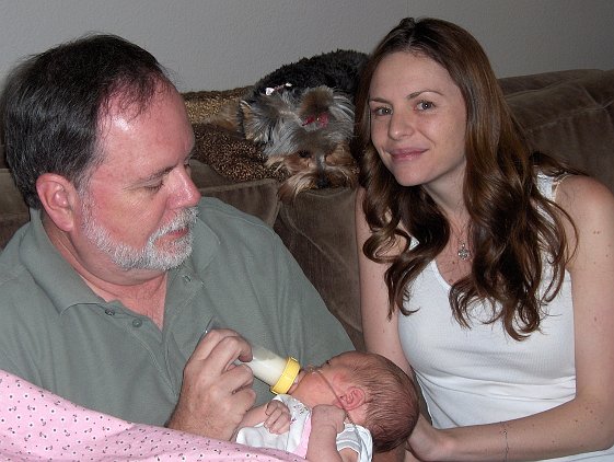 Abby resting Abby getting aquainted with Patricia. Abby, Stella and Jeff. Despite what it may look like, Stella is not trying to eat Abby. Stella--the big sister relaxed She's a pretty good sleeper I got to feed her... ...but Kate supervised. Hard work for both of us. She can yawn with her eyes open. Getting a bath She seems to enjoy the first part of the bath. Comfortable now? A short video of Abby making some noise while finishing up her bath. We drove down to Cerrillos one Sunday.