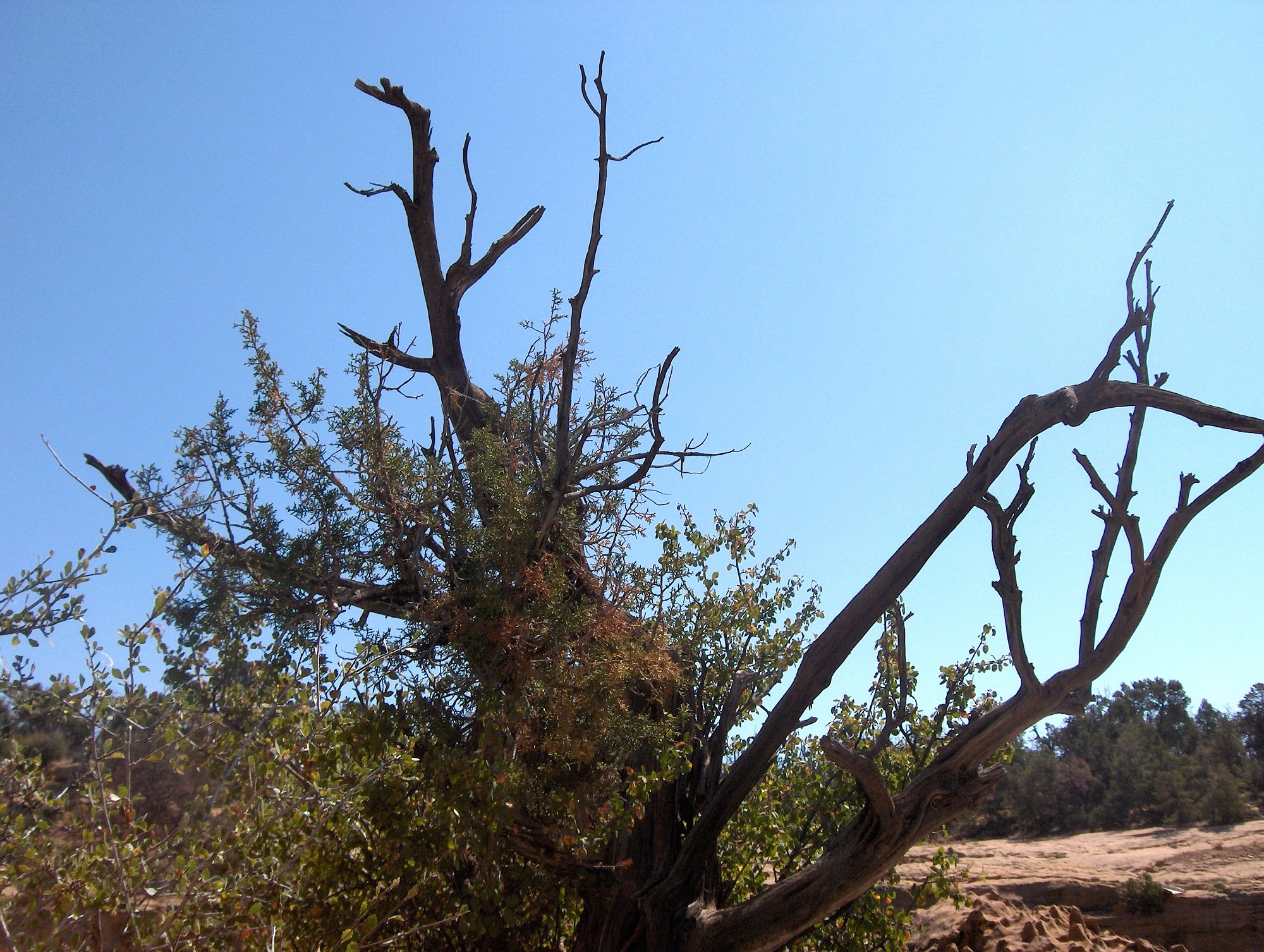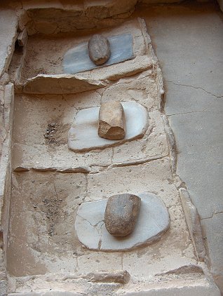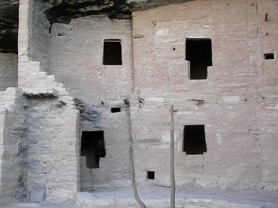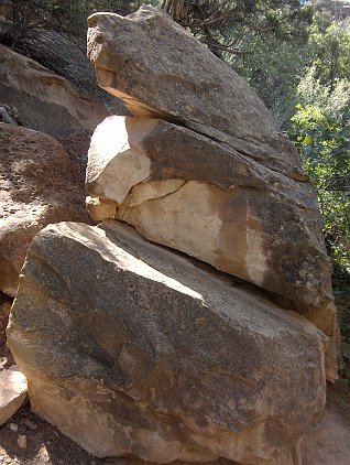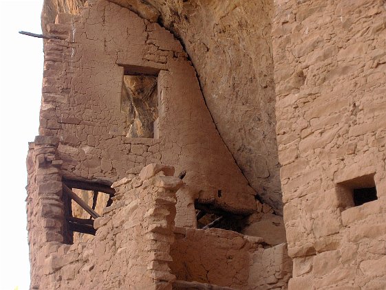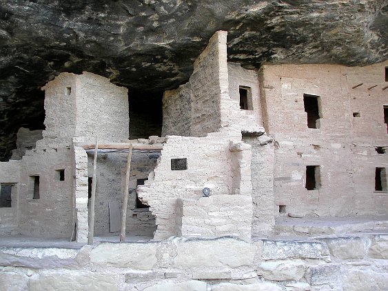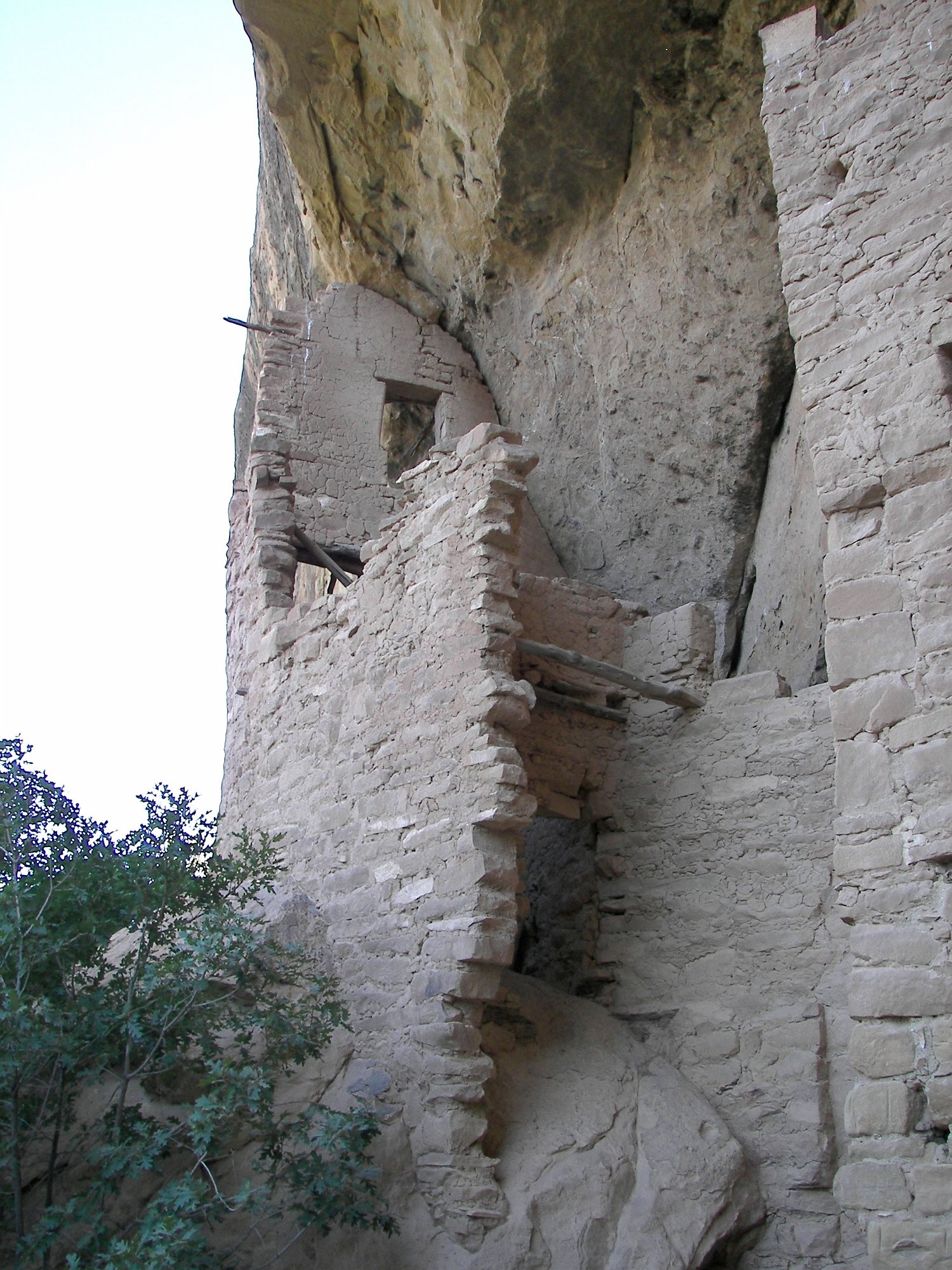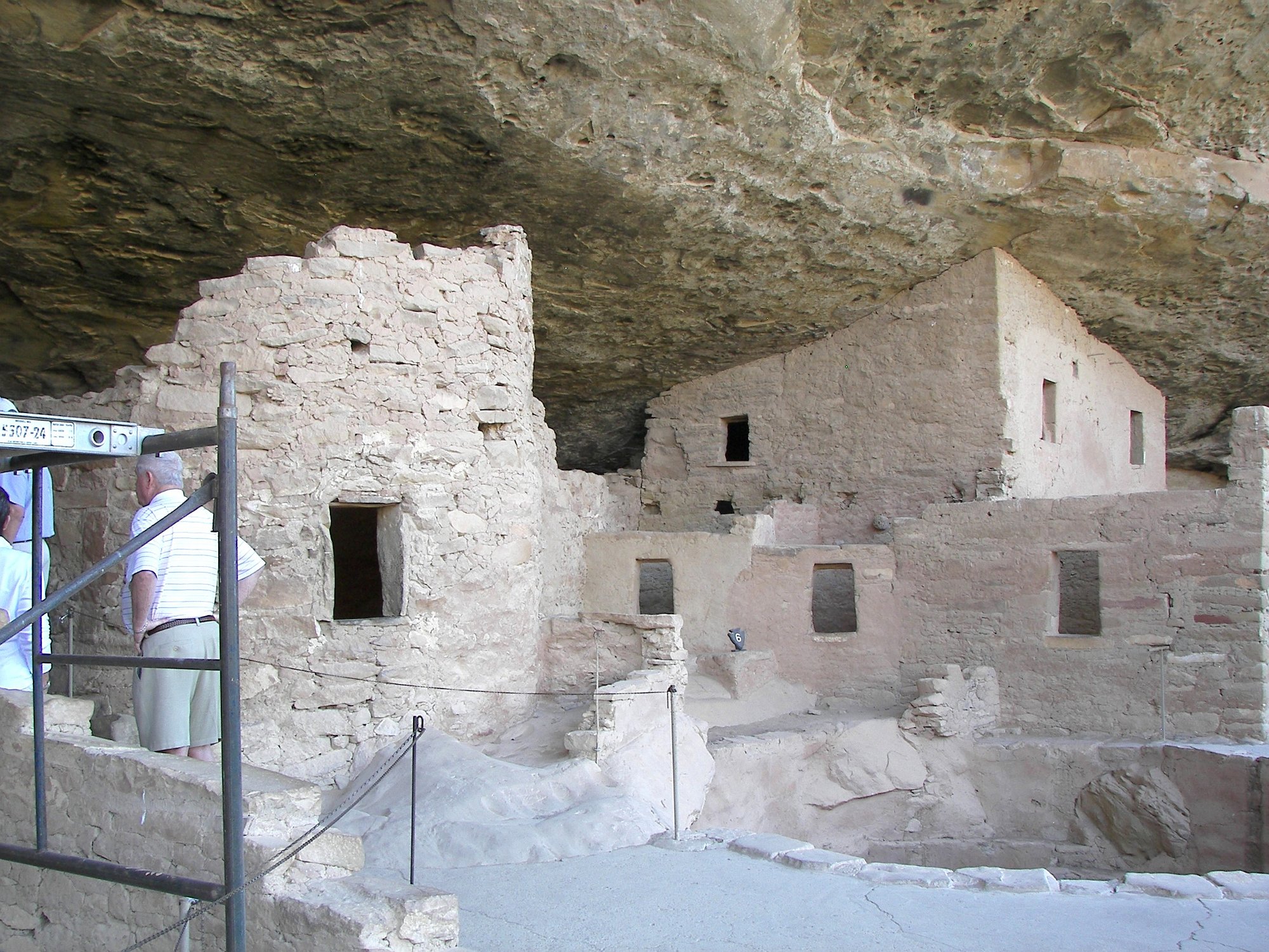 As part of our 40th anniversary weekend we made our first visit to Mesa Verde. Look here for more information about Mesa Verde Spruce Tree House from the path walking down. I wanted to show how well it seems to be hidden. Spruce Tree house ruins with some idea of size. Under the overhang, in front of Spruce Tree house. As you can see, it is really several buildings. Not constructed by amatuers. Look at the nice fitting curve. These walls almost look as if they grew in place. Note the blackened ceiling or overhang. The door shapes are distinctive. There are multiple depths as well as multiple stories. Close neighbors Multi-story dwellings; I brightened this picture so you could see that there are a series of rooms going back. Look at the close fit at the top. A fairly large kiva The walls all seem to be smooth on the outside and layered evenly. Matates and grinding stones Grinding a significant amount of grain must have been a lot of work. Another view of the kiva Walking back up the path from Spruce Tree House to the museum The top rock looks like some sort of animal head I spotted this across the way. It is some distance from the main ruin.