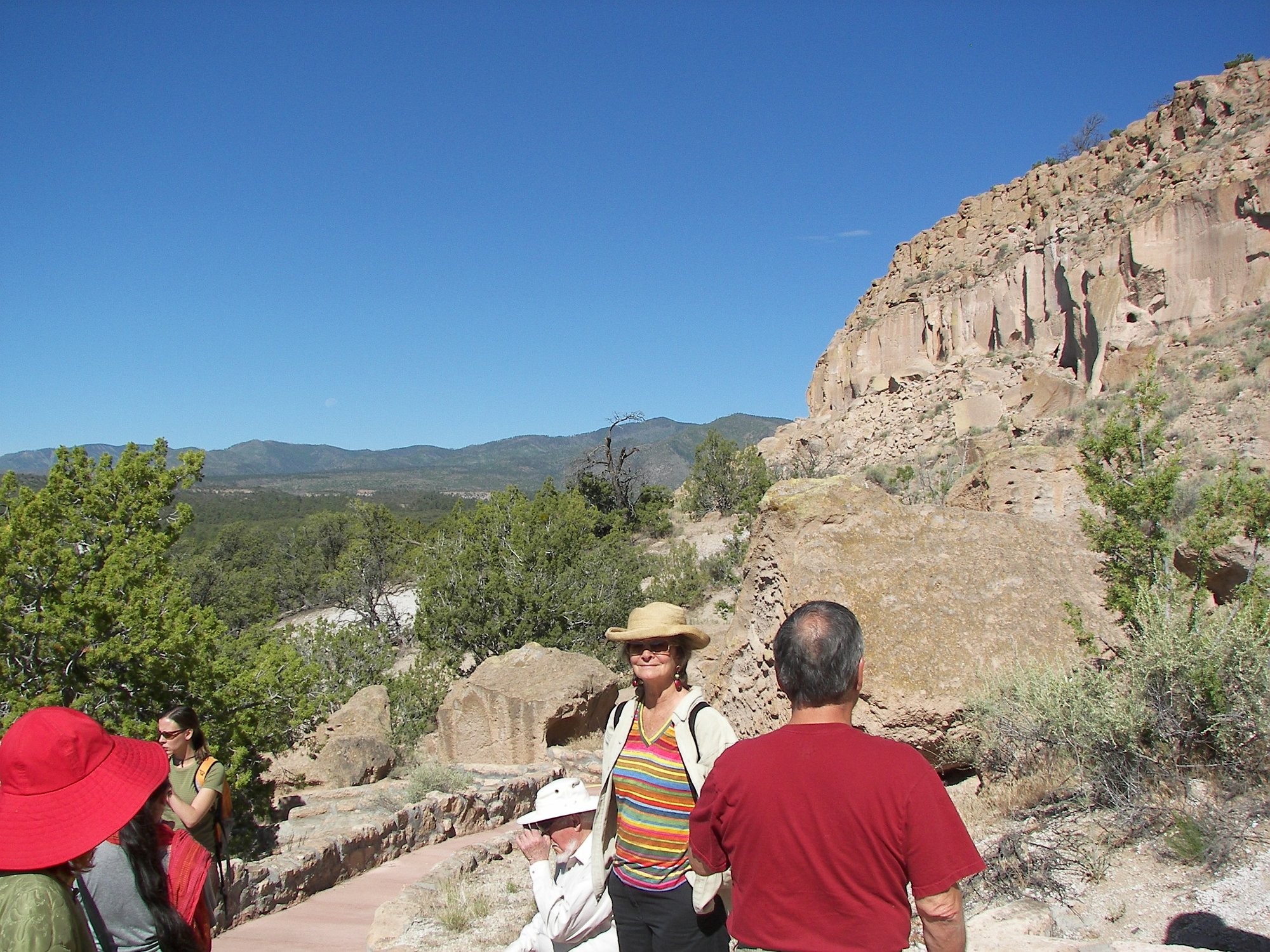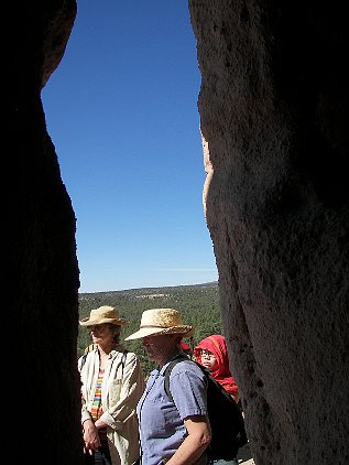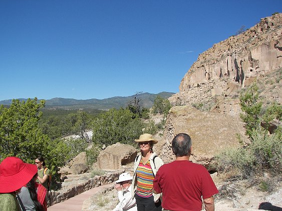 Climbing up to the cliffs. Later on, we will drive around to the top, because the same group lived up there, too.