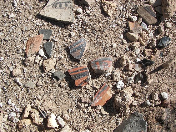 As with many of our visits, we saw a lot of pottery sherds. Note the different types in just this little selection.