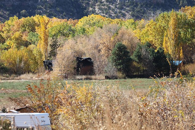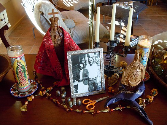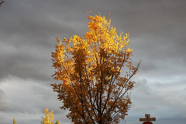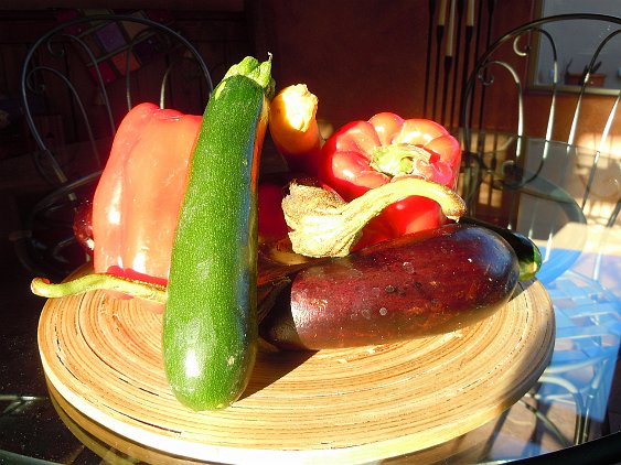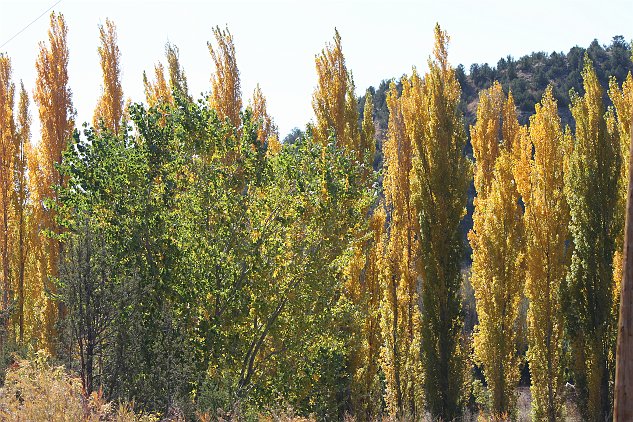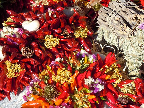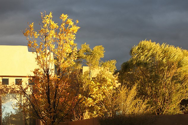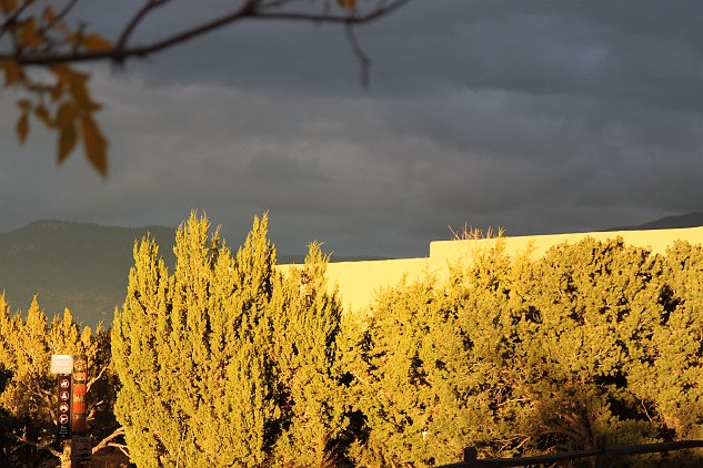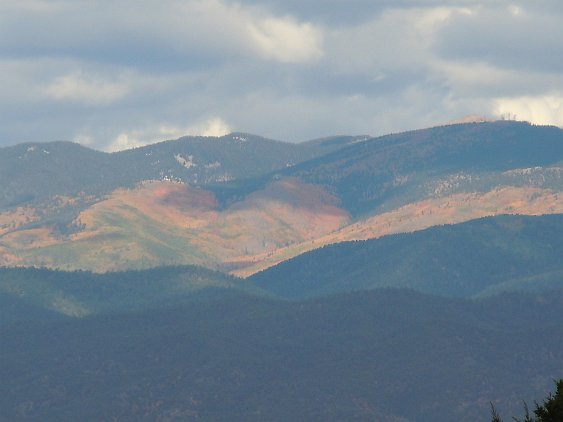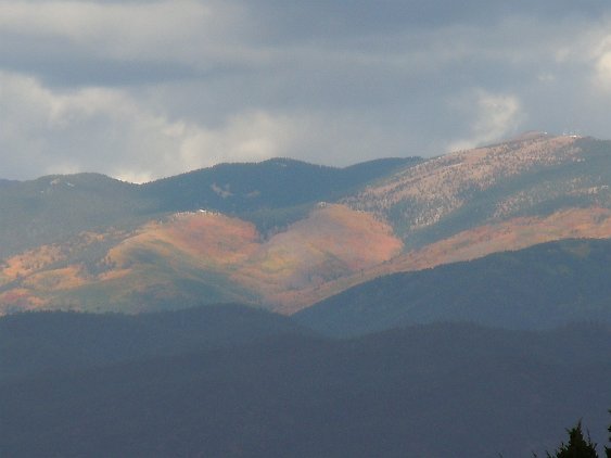 Fall had begun when we returned from our vaction. This picture from October 5th shows that the aspens were already changing. Patricia's limequat tree is showing promise If you squint just a little, these colors might make you think you were someplace where there is a real Fall. Lots of chile at the farmer's market Ristras and other decorations At this time of year visiting the farmer's market in Santa Fe is a colorful experience. Full moon on October 24th Most of the leaves are gone by the end of October The dark sky made for interesting lighting Simple home decoration South of Ribera NM, on highway 3 Remembering Elton Mt. Hood from Tevya's deck in early November A visit from Kate, Jeff, and Abby and a SAR trip to Burnt Corn Pueblo