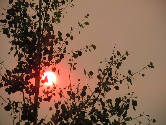 The camera does its best, but we could not capture the dirty grey color of the sky with the bright red-orange color of the sun.