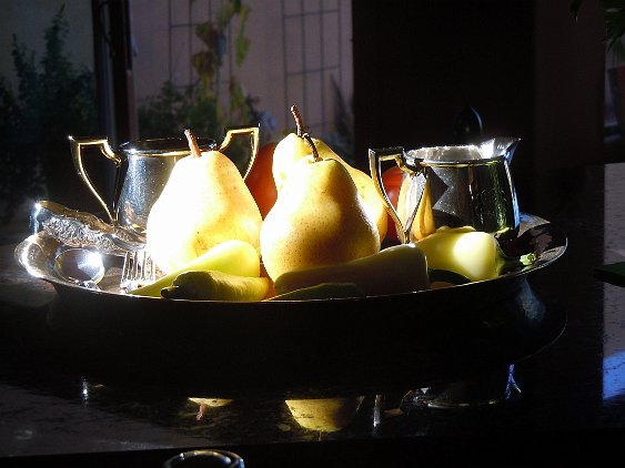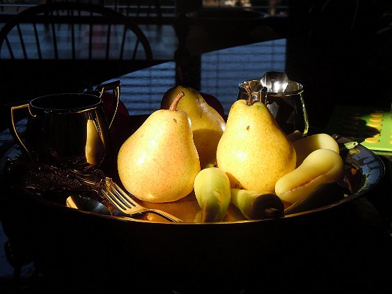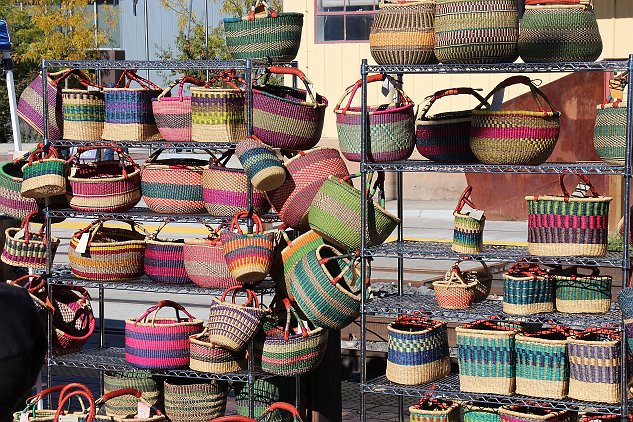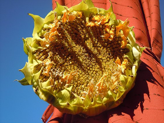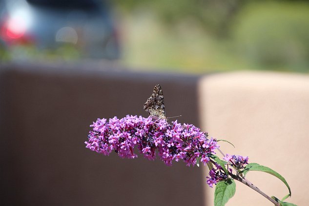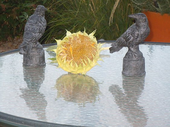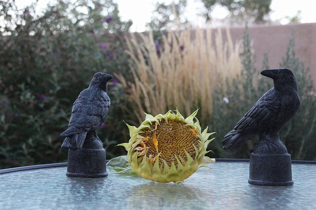 Patricia had a bumper crop of tomatoes Can you see the long tongue on the hawk moth? Hawk moth on a lavender plant Neat picture of ants and shadows Stained glass at Santa Fe Cathedral of St. Francis arrangement at Santa Fe Cathedral of St. Francis We think this large spider was dropped in our courtyard by a bird. Zoom in to see a weather balloon high in the sky drying sunflower head drying sunflower head The moon near the end of September Evening light near our house Jeff Smith made these Patricia experimented with light and form Patricia experimented with light and form Drying sunflower against the New Mexico sky An Upton Ethelbah sculpture in the afternoon light. Baskets at the Santa Fe Farmers' Market. Fall Santa Fe Farmers' Market July August September