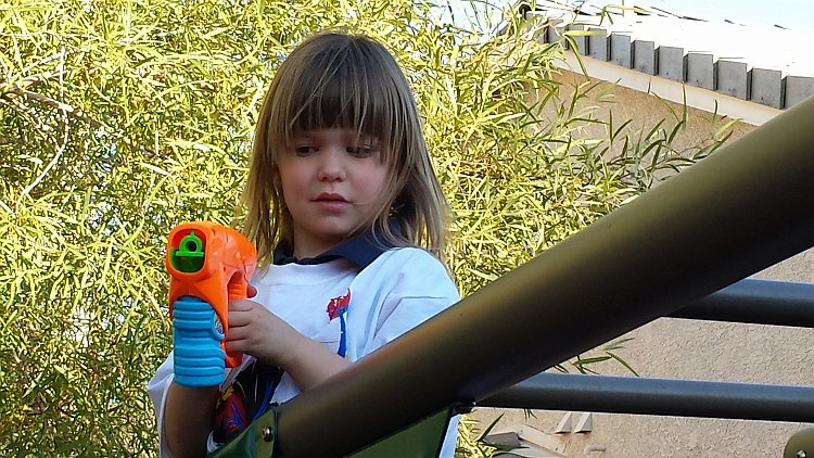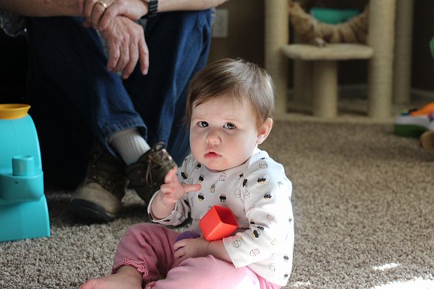 Early January sunset at home. Noah turned 6 in January. Hannah got even cuter. Hannah is learning a new trick in this picture. She is about 11 months old here. Ta-da! Some trick; right Grandpa? Noah likes to climb trees at a nearby park. We spent a long week in Denver while Patricia underwent a lot of testing. We did not get much snow in the winter of 2014. This is about the most we saw on the Sangre de Cristos. Abby in March in Las Vegas. Claire is almost 2 in this picture at the aquarium at a sports shop in Las Vegas. We visited a play area in Las Vegas and Patricia went down the slide with Abby. The plastic blocks Claire crawled through were full of static electricity which made her hair stand on end. Abby feeding a goat. Hannah walking like a pro at 13 months. April May June