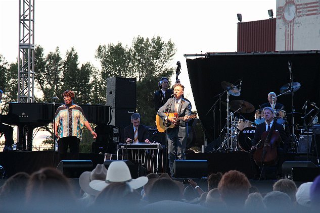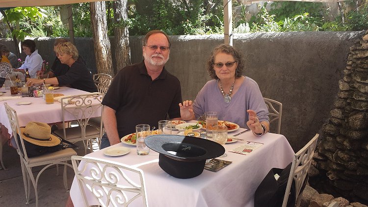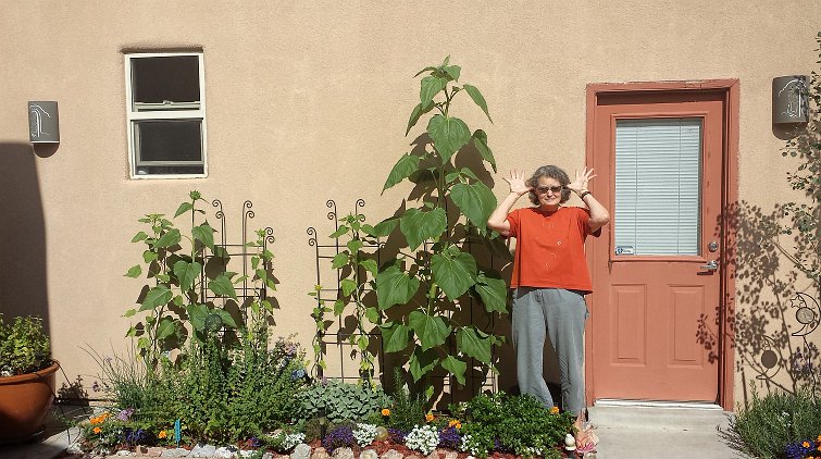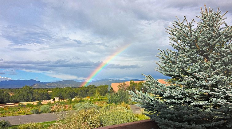 Imagine our surprise at discovering this snake on our front steps. These two crows had a vociferous discussion. languagex A butterfly on the butterfly bush in our yard. Spectacular evening sky in late July from our back patio. Patricia grew a mutant sunflower plant. This WWII B-29 bomber flew over our house as part of an air show in Santa Fe. Evening light on the Sangre de Christos from our courtyard in August. This afternoon rainbow looked like it began just across the street. We did not find a pot of gold, however. We celebrated our 45th anniversary in August. Abby entered first grade We attended the "other" Indian Market in August. Around the time of the Indian Market in Santa Fe, the Alan Houser sculpture garden is opened to the public for a day. Each time we go I see teh sculptures differently. At the Alan Houser sculpture garden This powerful piece is at the Alan Houser sculpture garden Against a backdrop of the hills near Madrid Interesting clouds Noah started first grade this year Noah and Hannah We attended a very good Lyle Lovett concert at the old Santa Fe Downs racetrack. April May JuneOctober November December