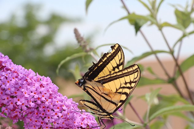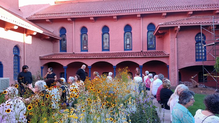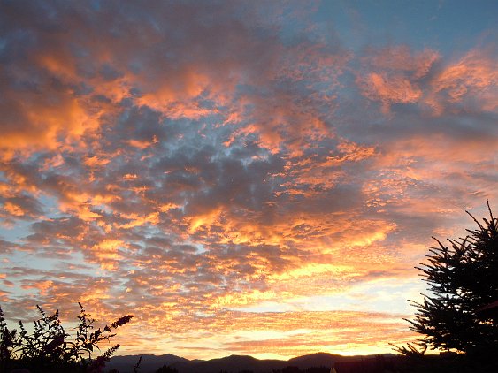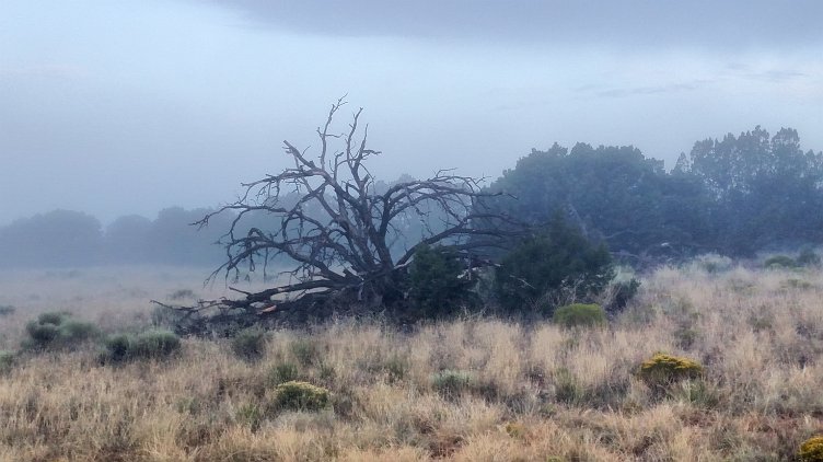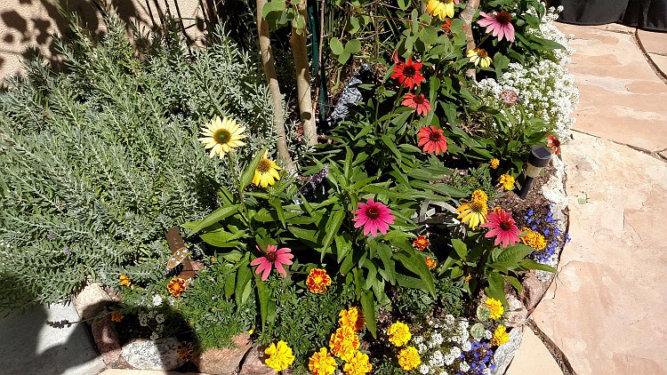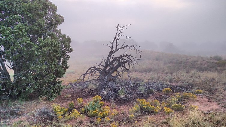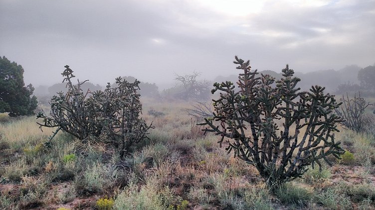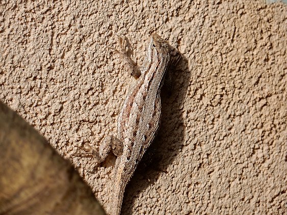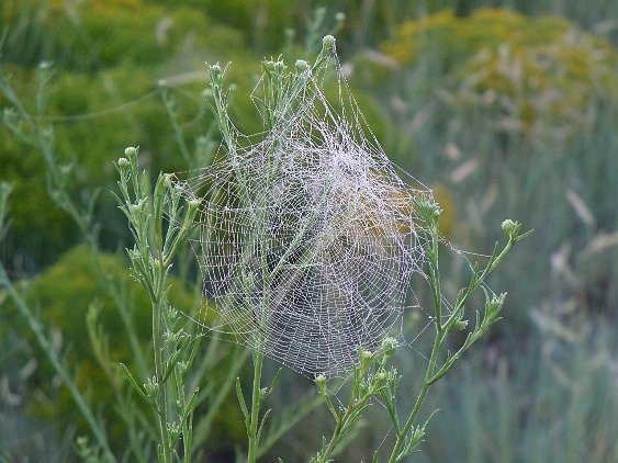 Early morning view of the Ortiz mountains and Sandia peak from trails around Rancho Viejo. fter we got the irrigation right, the flowers flourished. Not all evening skies are colorful. I can see just the faintest touch of color. The tomatoes did fine. We only made one visit to the opera this summer. We saw Rigoletto, one of my favorites. A foggy morning in August while I was out walking made for some unusual shots. A foggy morning in August while I was out walking made for some unusual shots. A foggy morning in August while I was out walking made for some unusual shots. The water droplets / mist highlighted some spider webs. Usually, this web was invisible. This lizard, which lives in our yard, blends almost perfectly with the adobe wall. April May JuneOctober November December