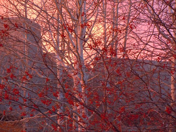 While in Spain we took a day trip to the Pueblos Blancos (White Villages) A deep canyon splits Roda We saw flamenco at the Museo de Baile in Seville. We went to Fes and visited the medina (old market). Patricia helped with the grocery shopping for a cooking class at our riad. Patricia prepared dinner for us at the Riad Alya. We would stay there again. Evening sky in Fes. The dots in the sky are not dust on the camera lens, but dozens of storks. October rainbow. Perfect rainbow A bird collecting sunflower seeds in our yard. We helped Noah with a school project by taking Flat Stanley with us as we went places. Flat Stanley at Santuario de Chimayo Flat Stanley at Pecos Mission Flat Stanly made it all the way to Belvidere. Claire in November Abigail with highlights in her hair. Noah got to be pretty good on his bike. Hannah in November December evening sky in Rancho Viejo The leaves are gone and only the berries remain on the hawthorne tree. July August September