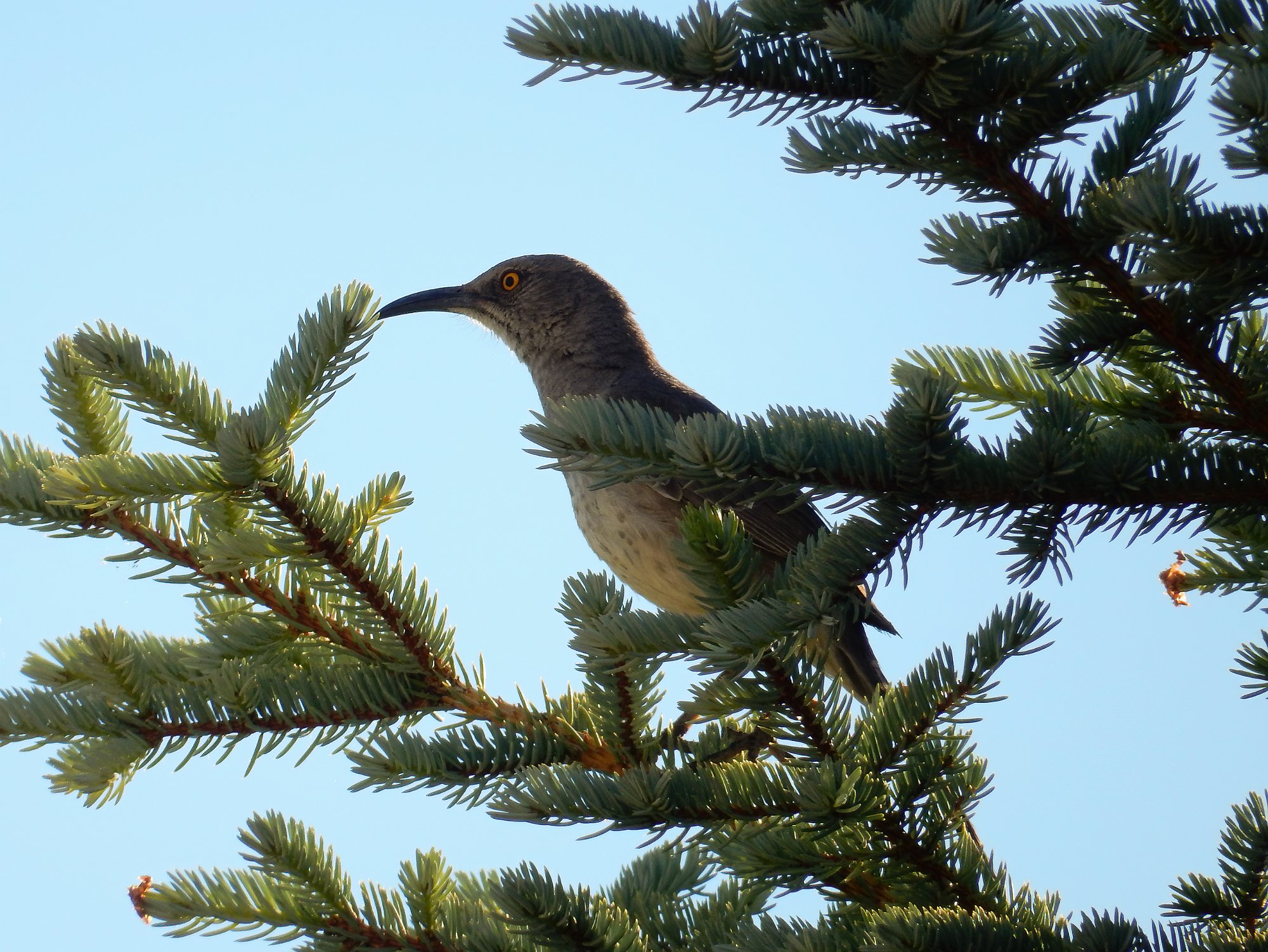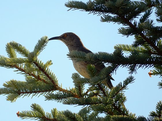 A pair of curve-billed threshers hung around the yard for a long time. The male's song is very interesting.