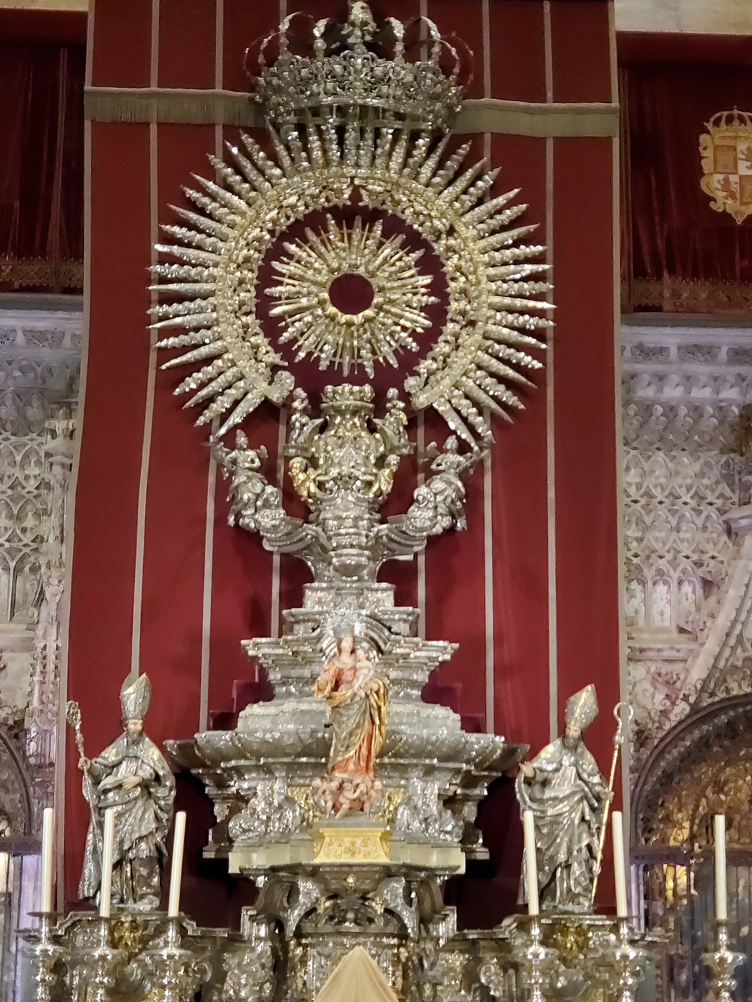 This gian monstrance is in teh Seville Cathedral. It is difficult to see the scale in this picture, but it is at least 12 feet tall.