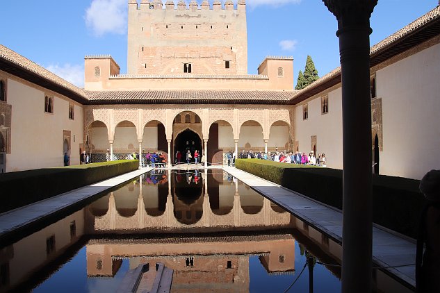 Famous view in the Nasrid Palaces section of the Alhambra. It was cool, but not unpleasant, the way it was in 2018. And no deluge this time, either.
