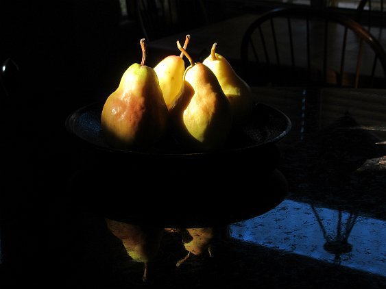 Every fall the light in the kitchen area is just right to create great reflections of these garlic ornaments.