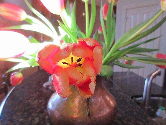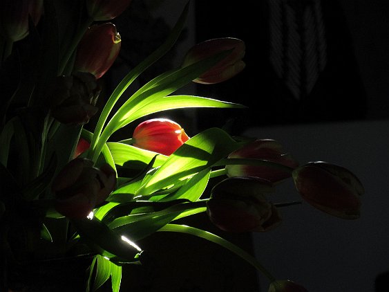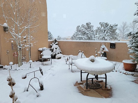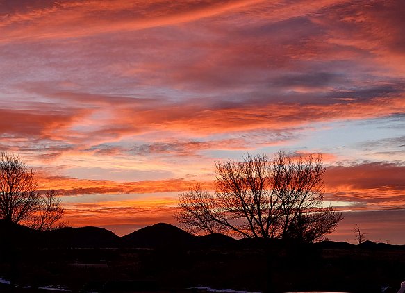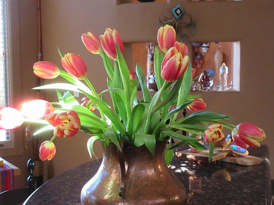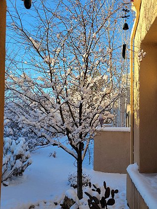 Fruit peel composition with reflection (Patricia) We get great light at this particular spot in January (Patricia) January 17, 2022 Full moon Morning light on new snow (01/28/2022) Sharp shadows and New Mexico blue sky. (01/28/2022) Our resident roadrunner was knee deep in snow. [Do birds have knees?] (01/28/2022) There wasn't really much snow and what there was melted quickly. (01/28/2022) Sunset colors on the 1st of February. We attended an Yjastros rehearsal at UNM. (02/11/2022) We saw the actual performance later. 02/15/22 February full moon Patricia was finishing a quilt and we came up with the idea of taking a picture so she didn't have to pin the hearts in place. (02/25/2022) March tulips. Note how the light changes from left to right. (Patricia) (03/12/2022) Tulip arrangement composition with highlights. (Patricia) (03/13/2022) March full moon (03/17/2022) A near white-out on March 23rd. April May June