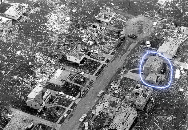 Mary sent me this image of the aftermath of the Belvidere tornado in April of 1967. The circled area is where the Moriarty family lived. I was in Denver at the…