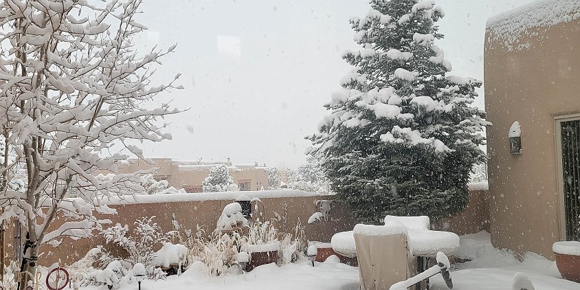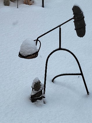 Another snowfall. This one covered up our security camera, which sits on top of the light fixture on the house wall.