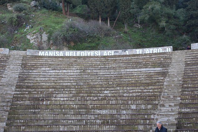 This sign tells us that we have arrived in Manisa (also Magnesia). We stopped on the heights above the city to look at an ancient theater.