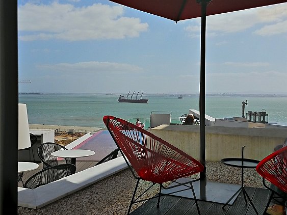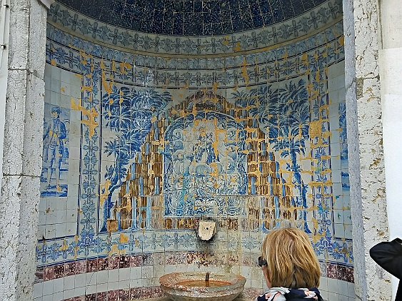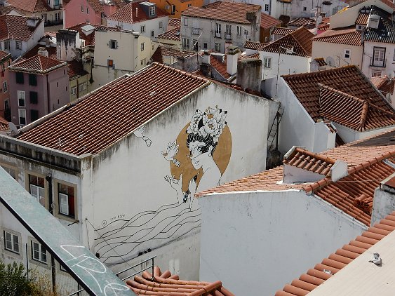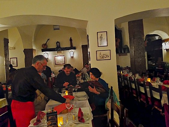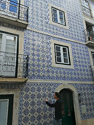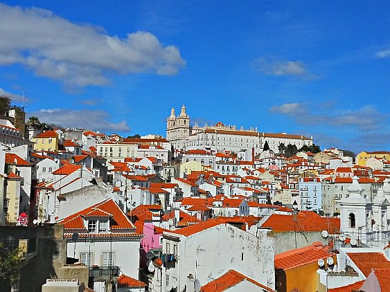 A beautiful day in Lisbon. From Hotel Memmo Alfama. At Club do Fado. Music mixed with a meal. Red light was used when performers were playing. Black and white looks better. Club de Fado in the daylight. A house next to our hotel. Do you see the face. This "picture" is only a couple of years old. Lots of tile fronts. Portugal is famous for its ceramics. This is what Commercio plaza looked like before the 1755 earthquake. Interesting mural. Looking down at the Tagus river. Museo do Fado (in pink) and new cruise ship terminal. Church of Sáo Vicente de Fora; Monastery of St. Vincent Outside the Walls" is a 17th-century church and monastery, begun in 1582. On our walking tour, our guide told us that some of the houses in Alfama have these tile fronts because people were trying to show their wealth. Neglected water fountain. There used to be many of these. Now, no one is responsible for them. There are a lot of stairs in Alfama. Our guide was very knowledgeable. The river Tagus from our patio at Hotel Memmo. Seville and CarmonaMadrid