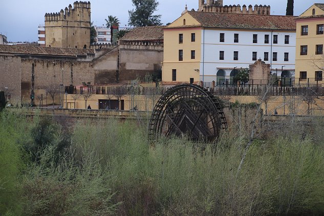 La rueda de agua desde del tiempo romano. This is a Roman-era water wheel along the edge of the river. It has been moved several times over the years.