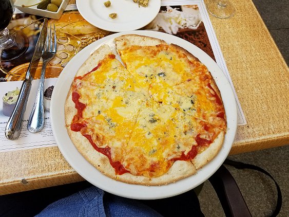 This four-cheese pizza may be the best in Spain. It was worth sitting in the cold and wind to eat this.