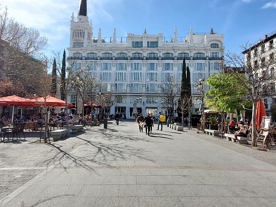 Even before the official lockdown in Spain, places like Plaza de Santa Ana, in Madrid's theater / arts and letters district, were nearly empty.