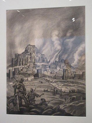 Carlos Saenz de Tejada, Milicianos anta Morella, Castellón) (Militiamen against Morella, Castellón) 1936. (I assume the Spanish Civil War)