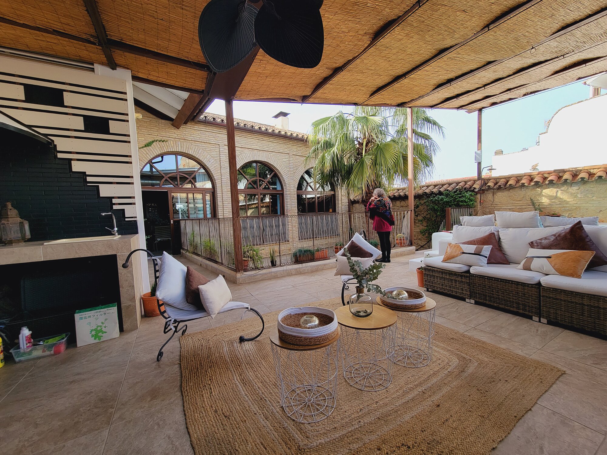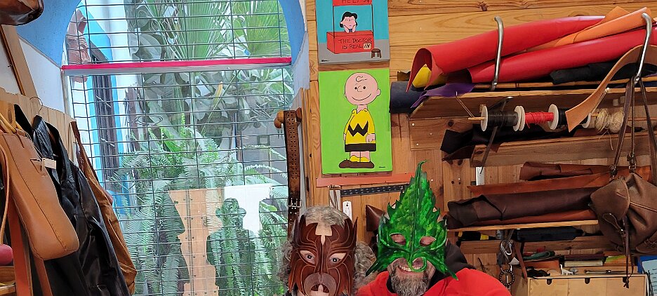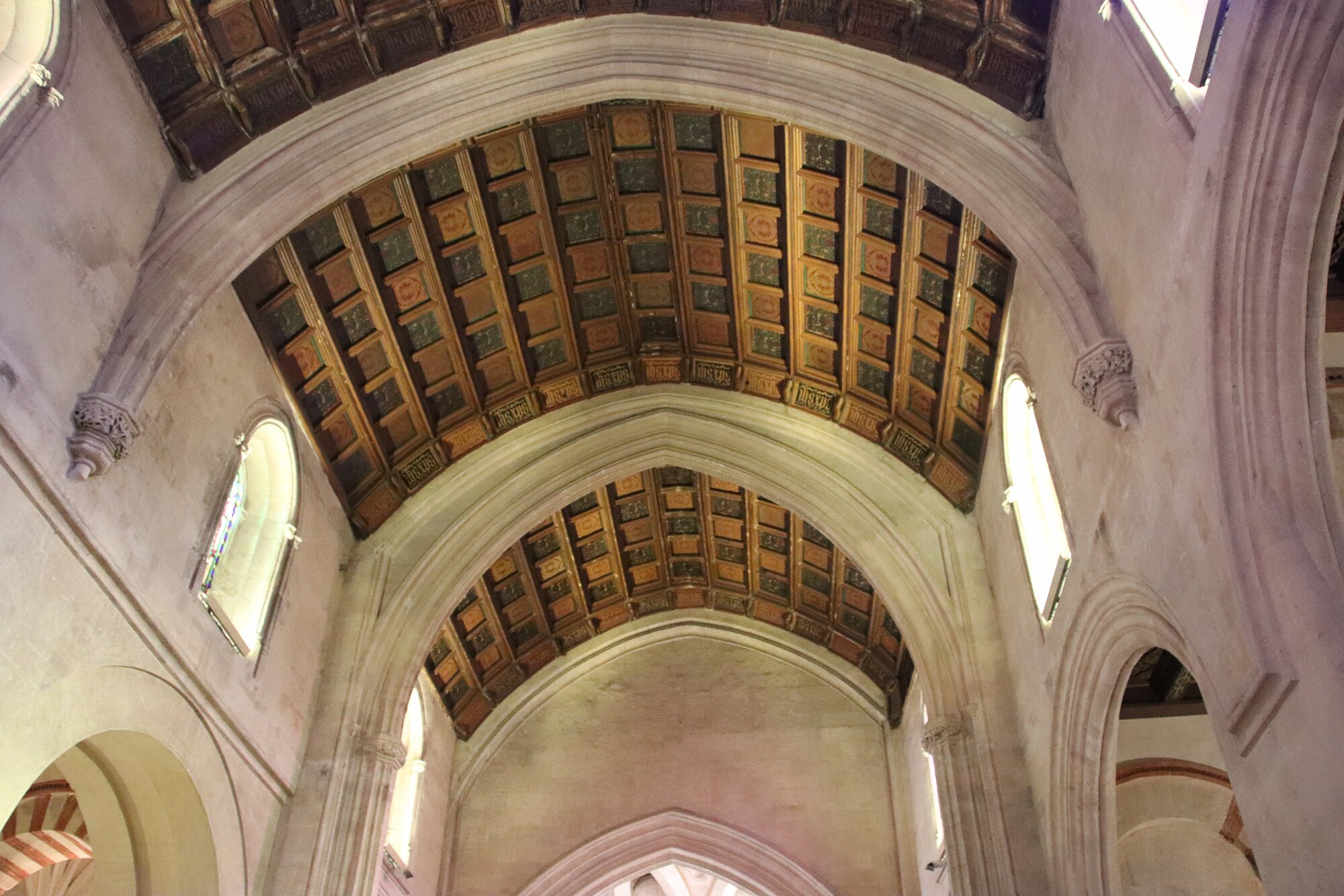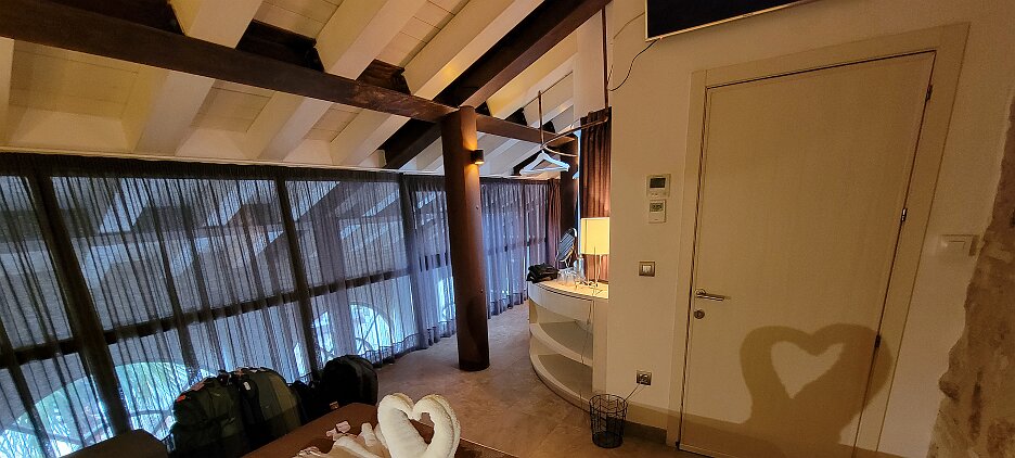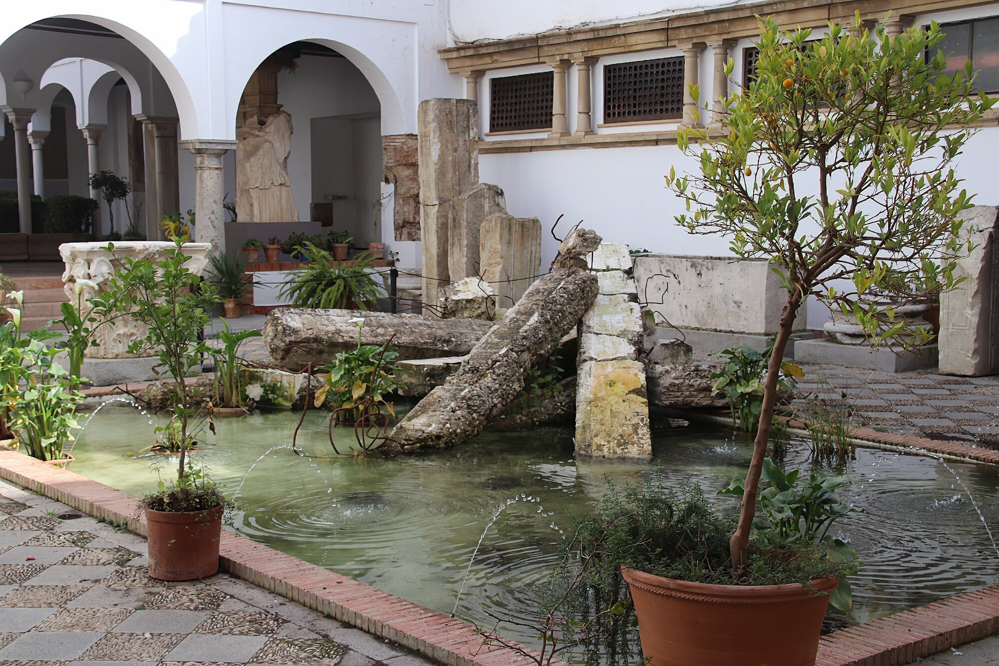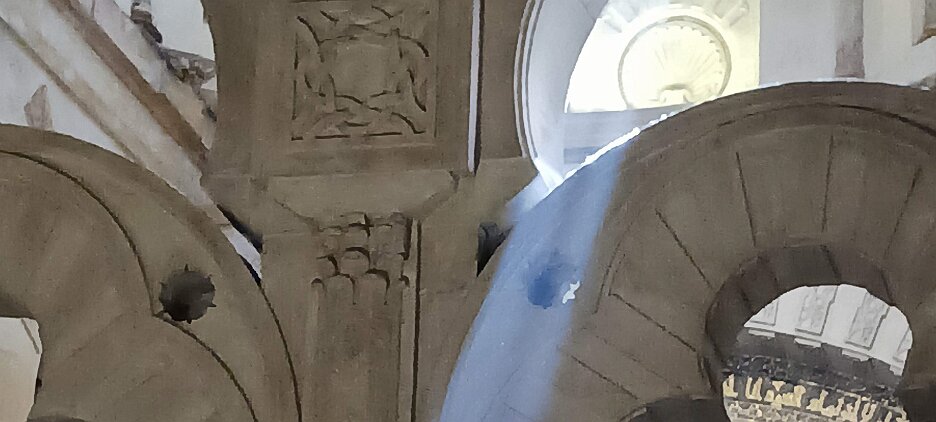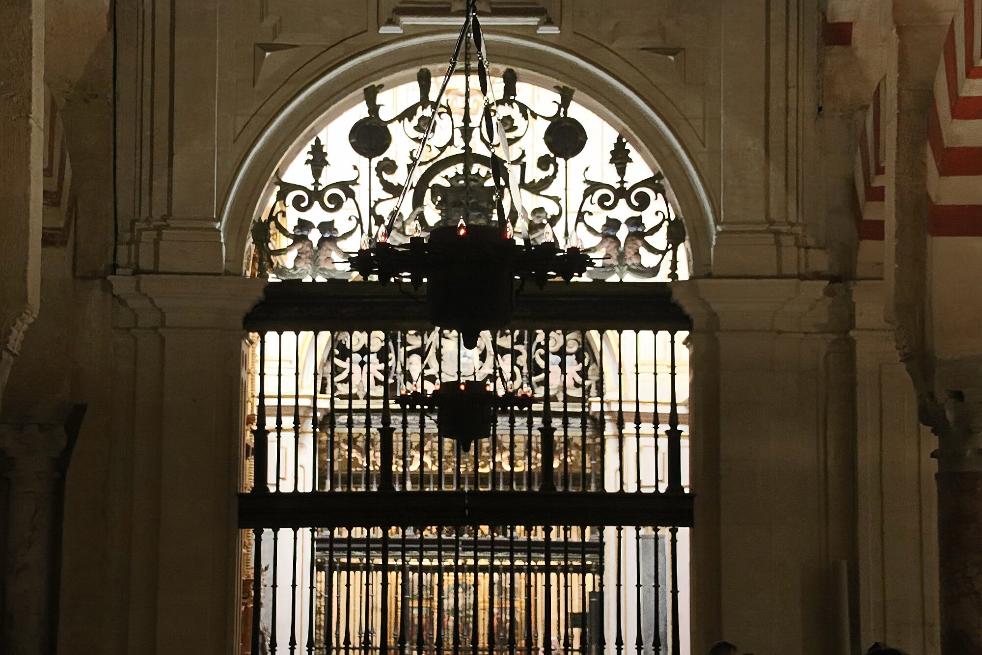 On the patio at Patio del Posadero in Córdoba. We like to stay in this small boutique hotel. Our room was set up very nicely. Córdoba has many small streets for us to wander. We no longer get lost. Bell tower of Altar de San Rafael, off C. Lineros, in Córdoba One of the great breakfasts we were served at Patio del Posadero. Colorful painted wooden ceiling (techo de madera pintado)in the mezquita. Once again. the amazing arches in teh mezquita. Dazzling forms and colors everywhere. A shaft of sunlight and too many details to take in in a single (or 8 or 9) visit(s). In the midst of all the Islamic art, we find a Christian chapel. Close-up of the grill work A forest of arches Wide angle of some of the arches Patricia took a picture of me. In the choir part of the church part of the mezquita. Looking towards the altar deom rhw choir. There are organ pipes on both sides above. Córdoba is proud of its flowered streets. Patricia bought a mask at this small leather shop and the proprieter posed with her. Part of a Roman-era theater which has been excavated under the museum - or the museum was built over the theater. The garden (jardin) on the grounds of the museum. Jerez