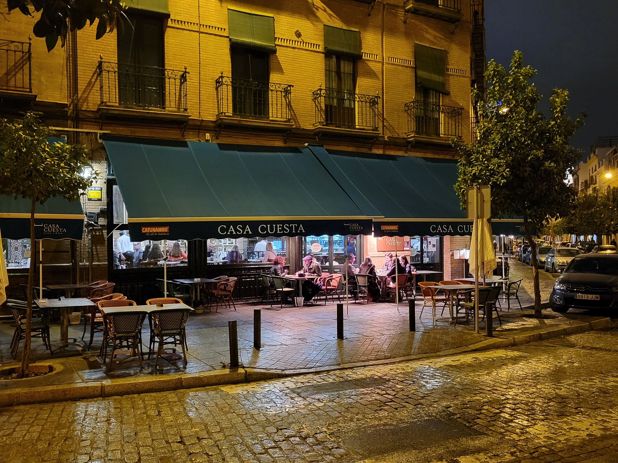 Our final food stop was Casa Cuesta. There we had Espinacas con garbanzos, Salmorejo and Carrillada al PX. You can see that it had been raining on and off…