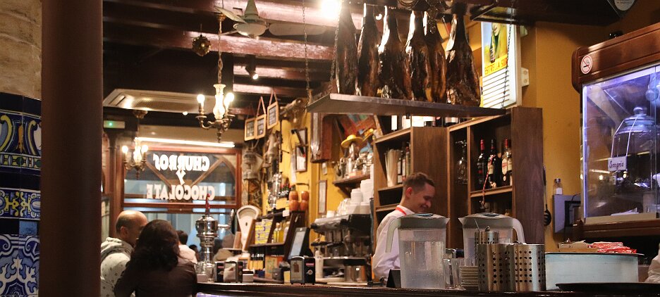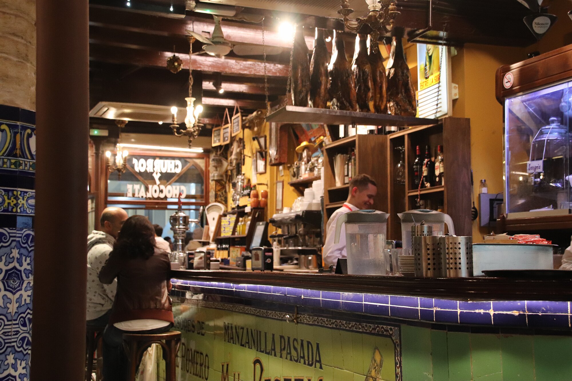 Then we stopped at Casa Morales on the food tour. I am not at all sure what was stored in the giant vats. We had Montadito de pringá and Tortilla de patatas…