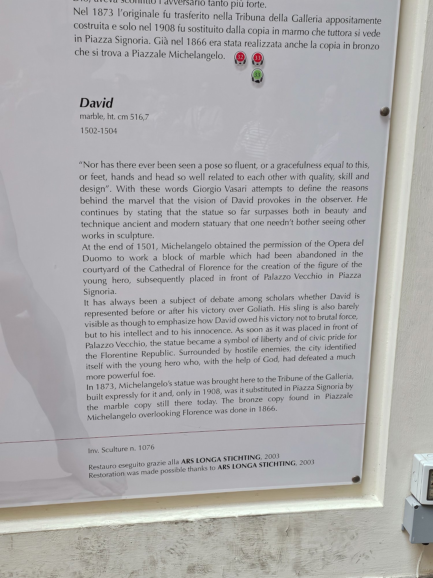 Galleria dell'Accademia di Firenze exhibits the largest number of Michelangelo's sculptures in the world. We were both happy to be here.
