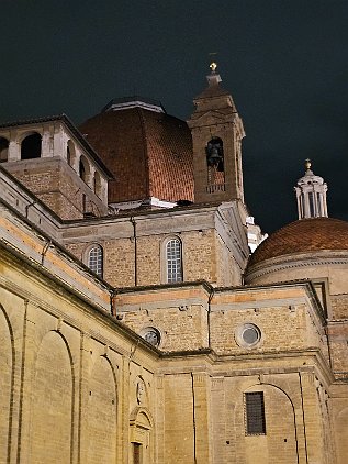 Multiple layers of the Basilica di San Lorenzo at night. This church was directly across from our hotel, in the middle of the market district.